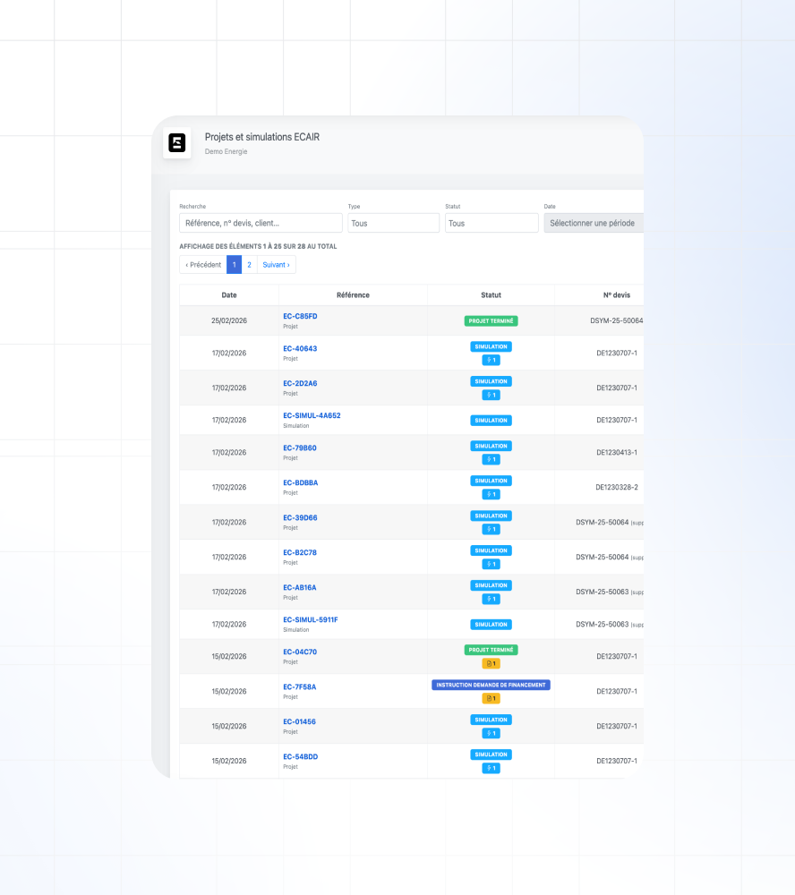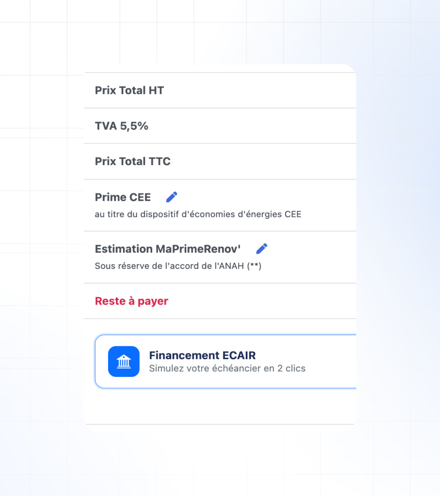 Lancez une demande de financement ECAIR en un clic depuis le devis